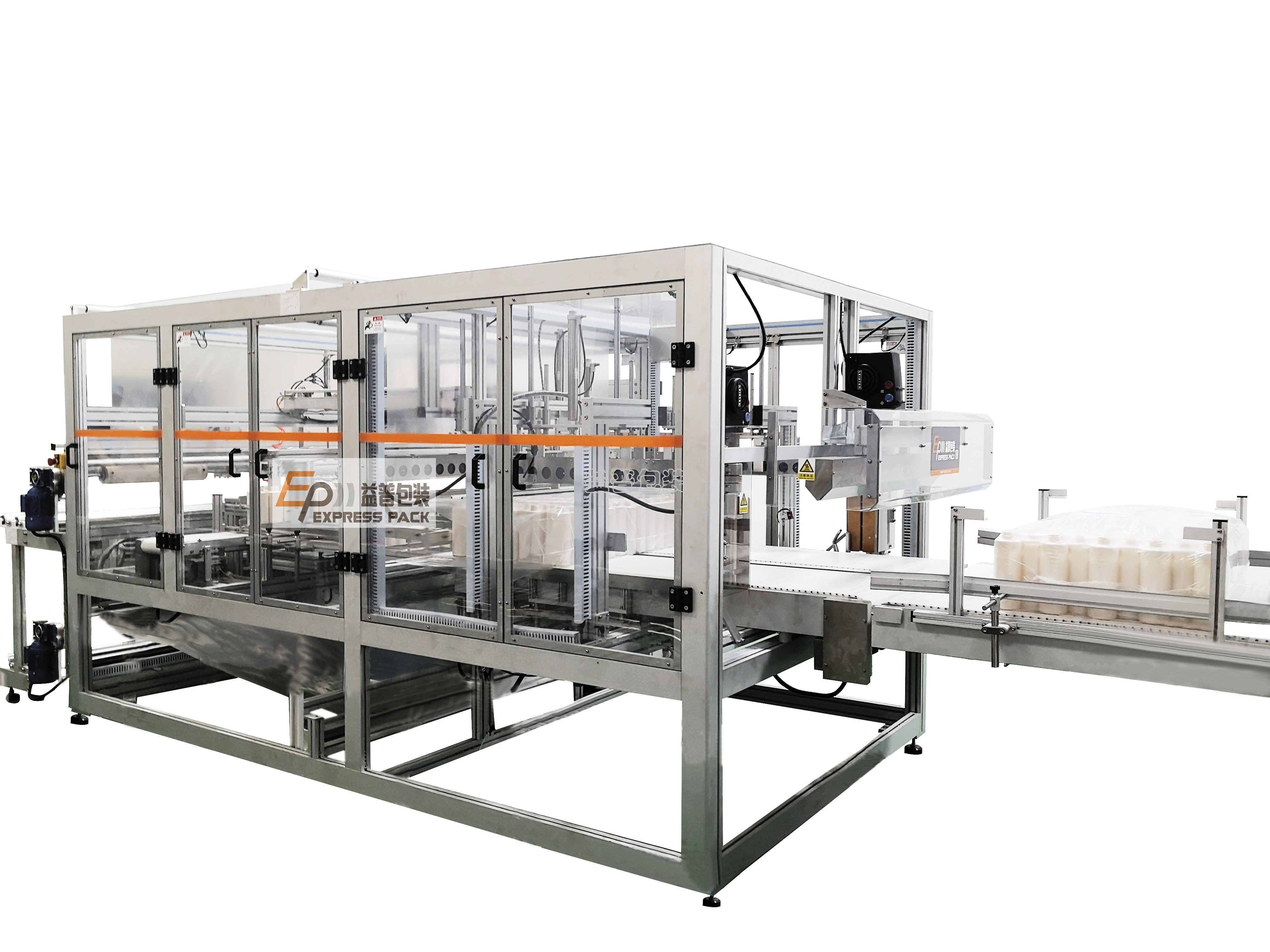 Automatic Bagging machine, with self-made bag from rolls of thermo shrinkable film, is flexible to work with different bottles formats. It is usually installed after blower and leak tester. Our standard equipment allows making bags with sizes: 600*1000, 600*800, other sizes are available under discussion with EP team.
